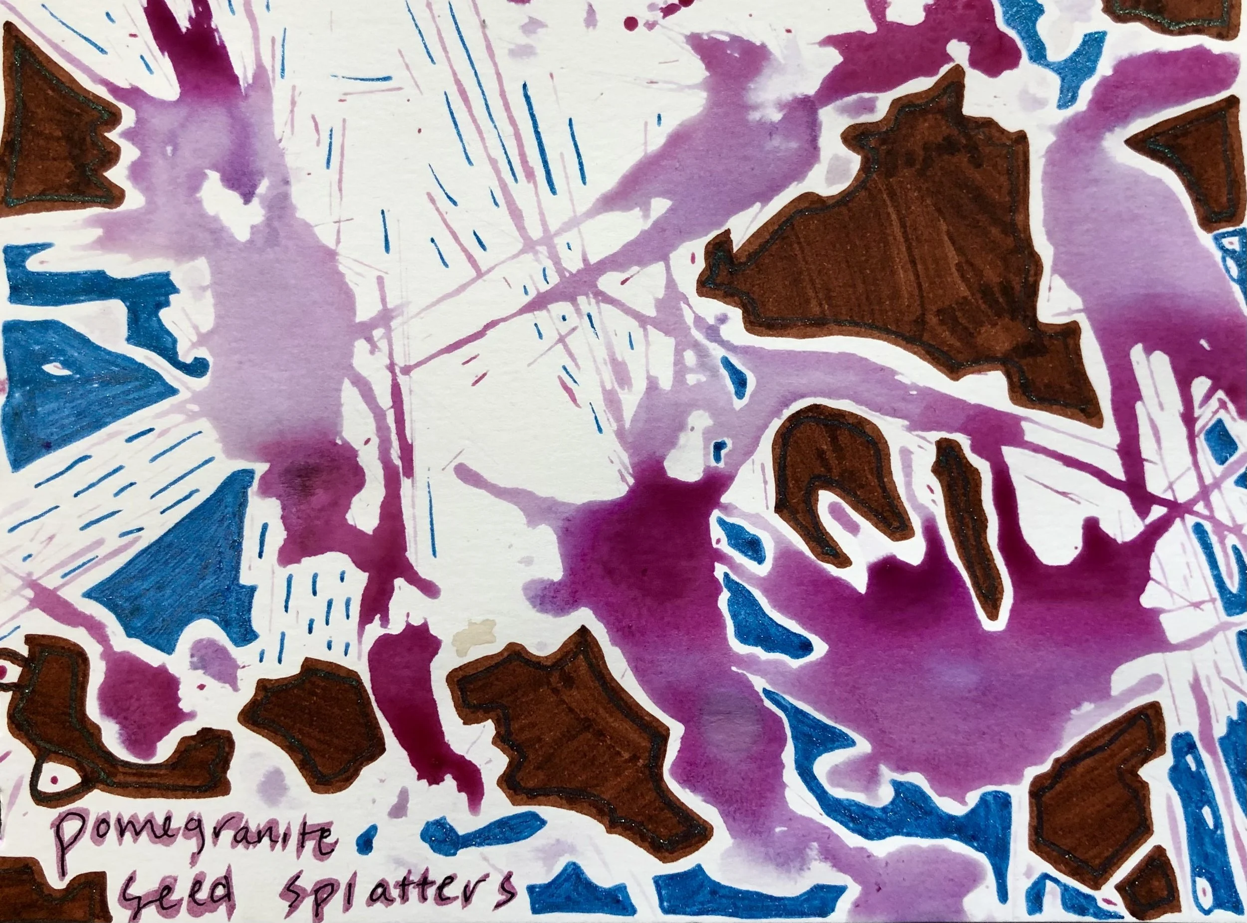 Flash forward to zoom services with @jewishstudioproject, whose programming I always attend with art supplies in front of me. That’s been something really beautiful about high holiday services these past few years over zoom — I get to tap into my art practice as a fully spiritual experience. And as Rabbi @adin_olam is speaking truth per usual, pomegranate seeds are exploding in my mouth and I’m like waittttt I wonder what color these would look like as paint? And I’m like woah God, your magic again.